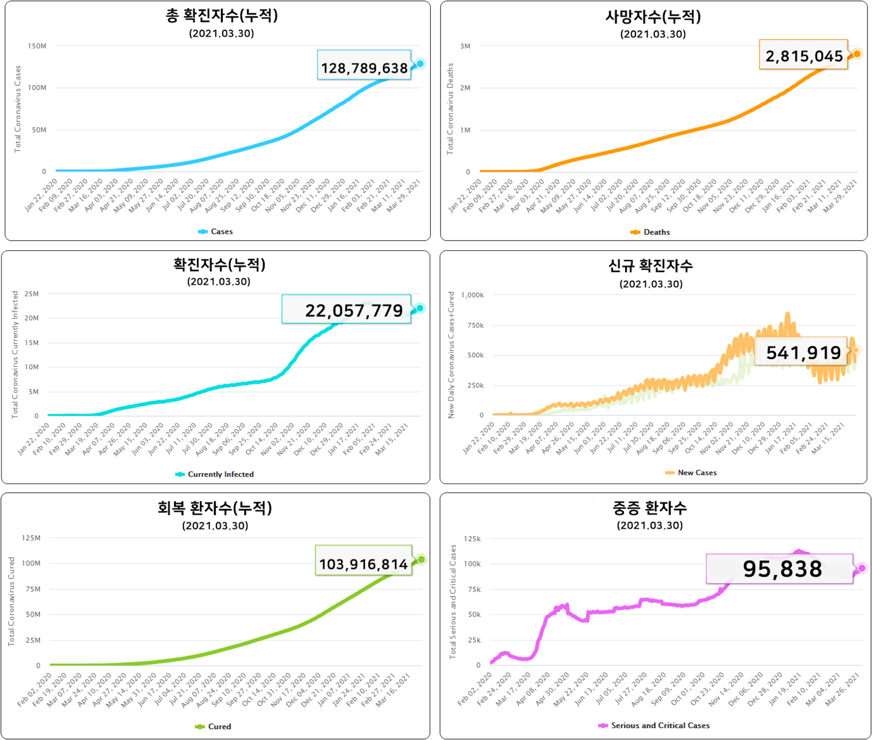 다음은 전 세계 코로나19 현황을 정리한 그래프입니다.