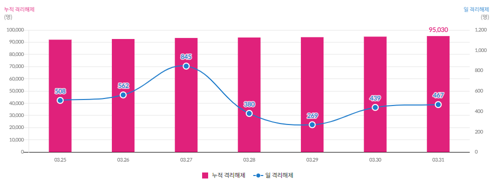 2021년 3월 31일, 중앙방역대책본부가 발표한 자료에 따르면