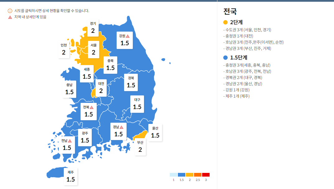 [ 지역별 거리 두기 단계 (4.2 00시 기준) ]