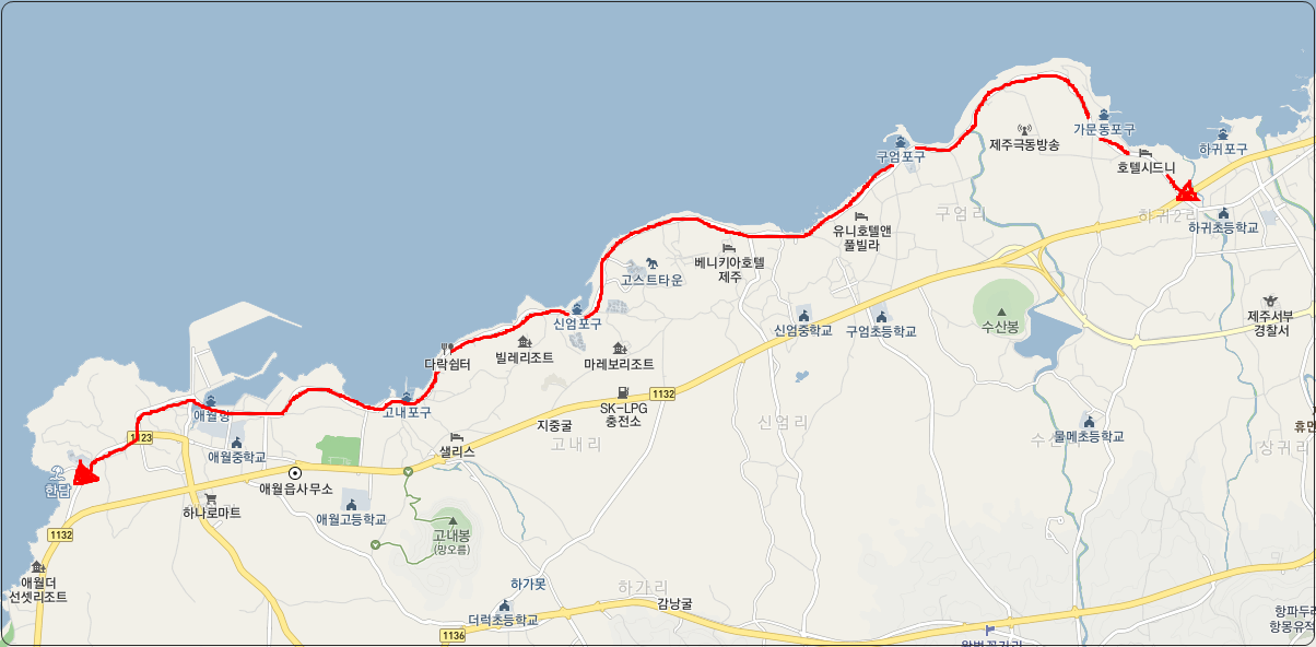 저희는 애월리에서 출발해서 하귀리까지 해안도로를 따라 달리고,