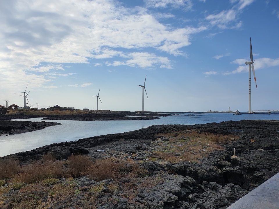 제주도는 장소가 어디든지 멋진 바다를 볼 수 있어 정말 좋은 것 같습니다.