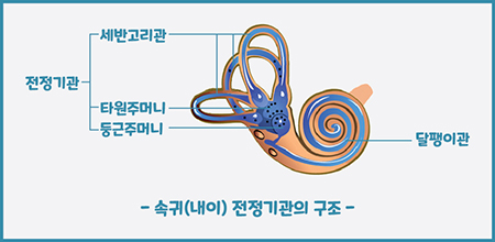 - 달팽이관 전정 반고리관이 속귀이상으로 발생합니다.