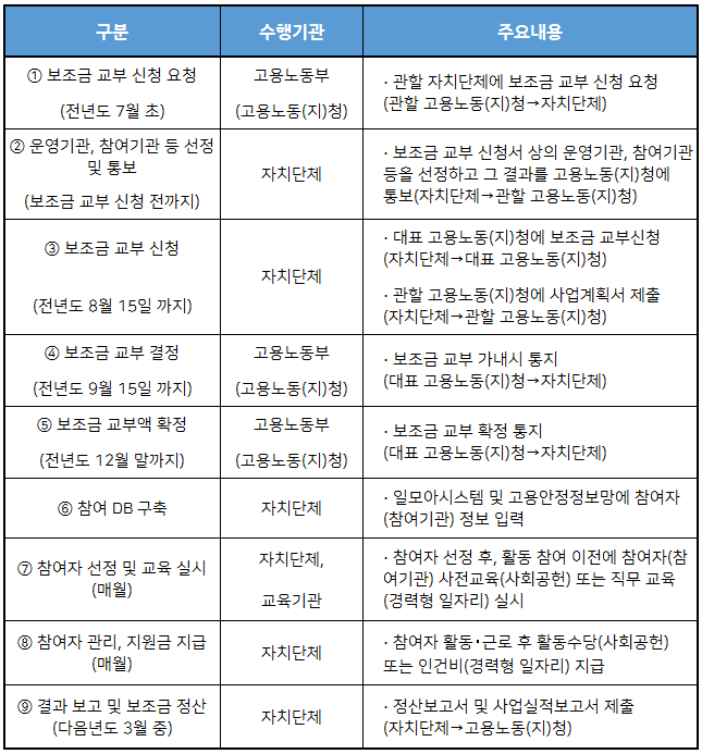 - 시행주체 : 지방자치단체(자치단체경상보조)