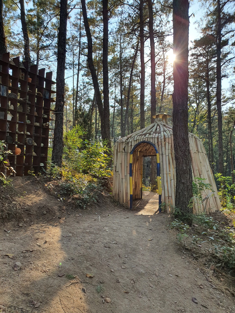 연미산 자연미술공원에는 新섞기시대전, 자연미술 상설작품전, 자연미술 영상전, 자연미술 큐브전, 찾아가는 자연미술전 등 크게 5개의 전시회를 하고 있었는데, 저희는 야외에서 전시하고 있는 '新섞기시대전'과 '자연미술 상설작품전'을 감상했습니다.