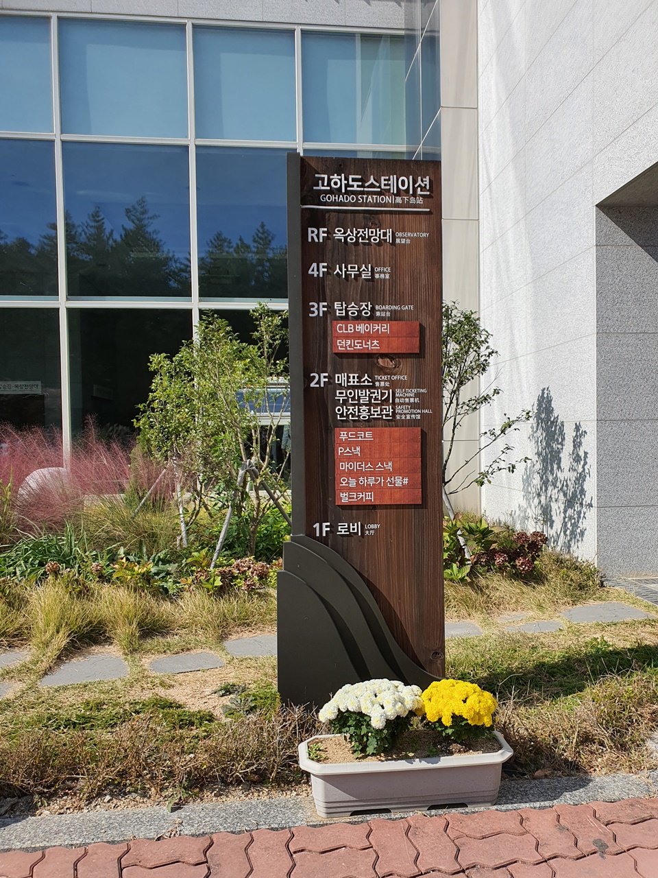 고하도 스테이션은 매표소와 탑승장 외에 안전홍보관과 푸드코트, 커피와 빵을 먹을 수 있는 던킨과 제과점, 그리고 옥상정원(루프탑)으로 구성되어 있습니다.