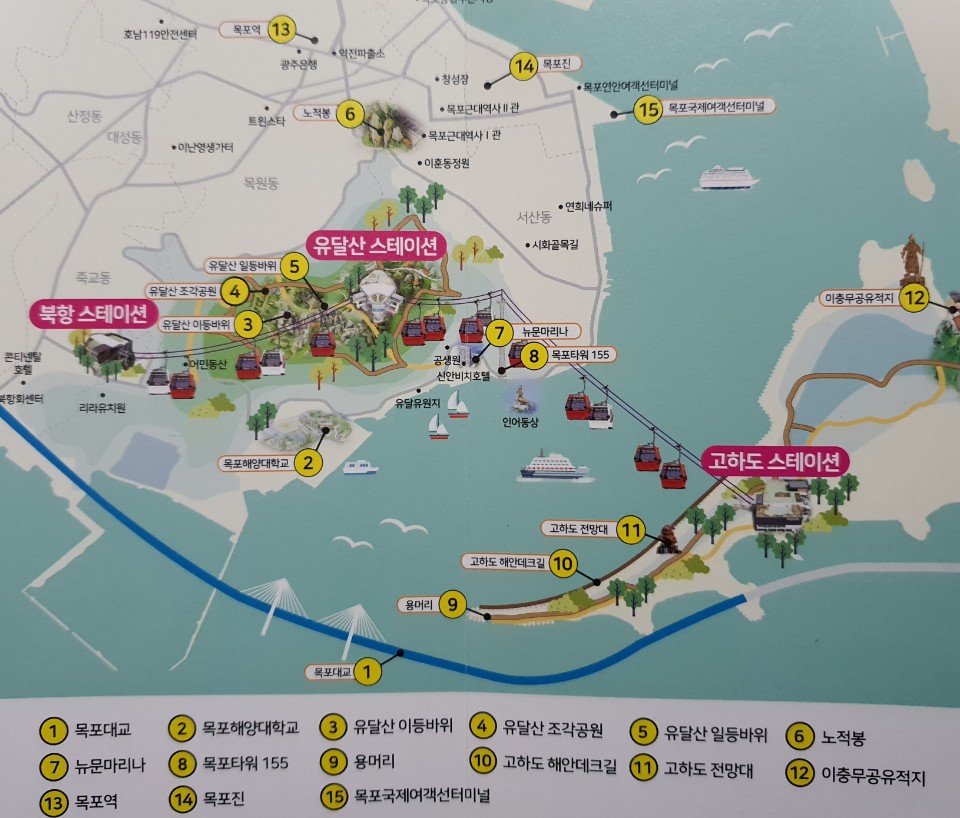 그리고 아래는 목포해상케이블카 3곳의 승강장 주변의 관광지가 표시된 지도입니다.