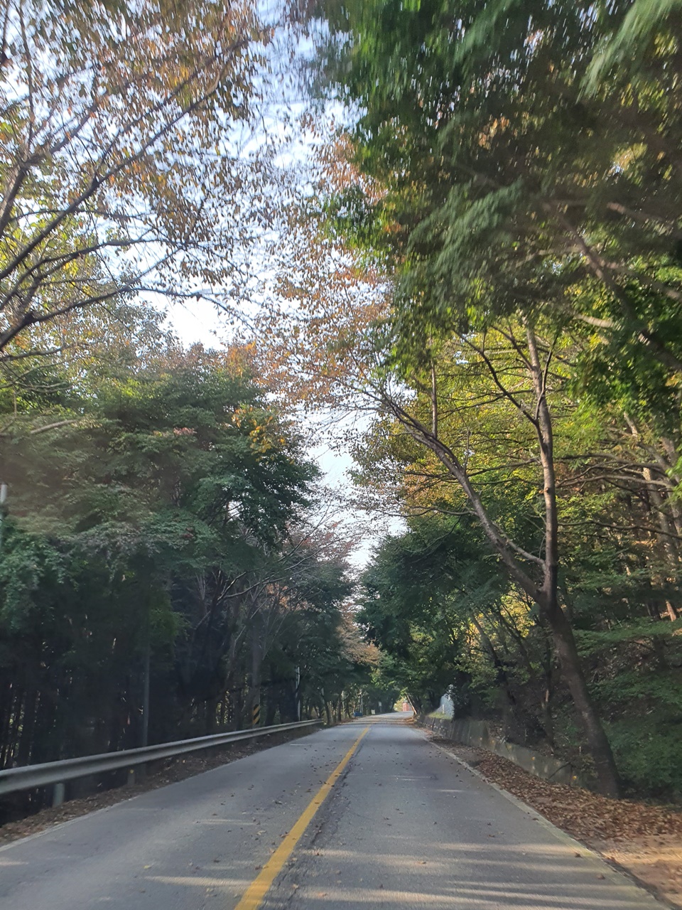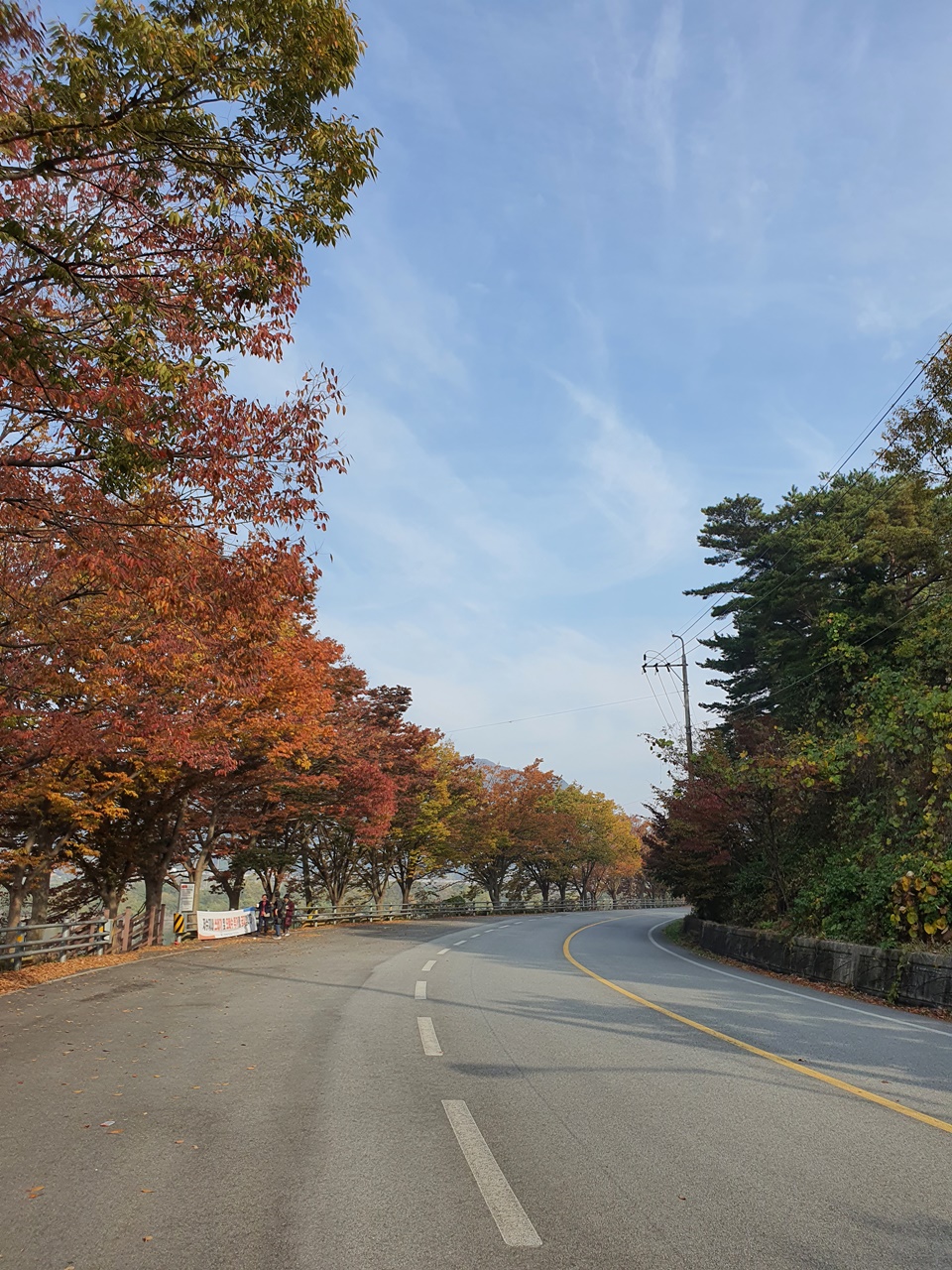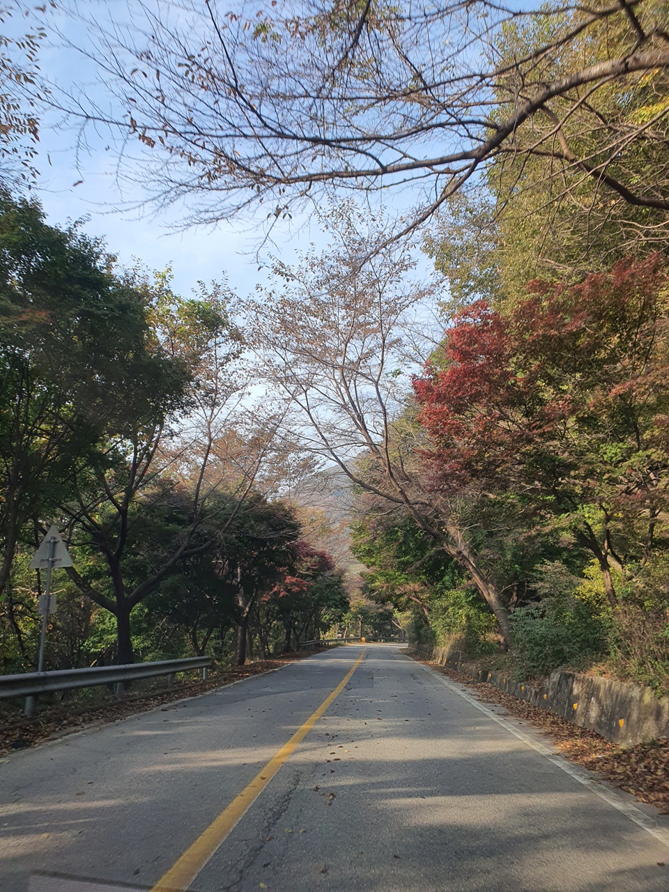 평일이라 그런지, 차가 없어서 저희는 천천히 단풍을 감상하며 달렸는데,