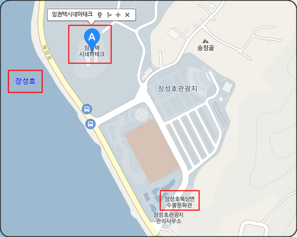 장성호 바로 앞에서 임권택 시네마테크 공원을 발견하였습니다.