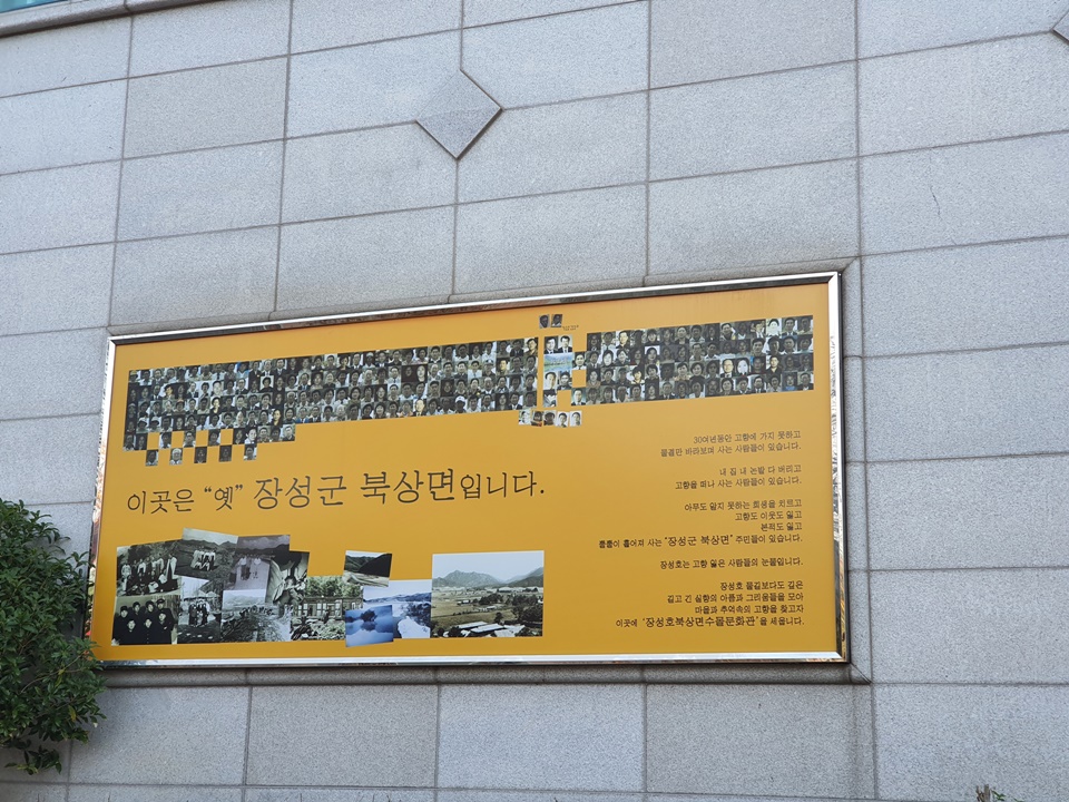 1973년 장성댐 공사가 착공되면서 그곳에 살던 분들이 고향에서 강제로 이주를 당했는데, 장성호 수몰문화관은 그 당시 장성호에 땅과 집을 내준 수몰민이 물속에 잠긴 그들의 고향을 복원하여 영원히 남기고자 전남 장성군 북하면 쌍웅리에 그들의 후손들이 세운 곳이라고 합니다. 특히 이 곳은 댐 건설 후 30년이 지나서야 만들어질 수 있어서 더 애환과 눈물이 있는 곳이라고 합니다. (출처: 북상닷컴www.bugsang.com)