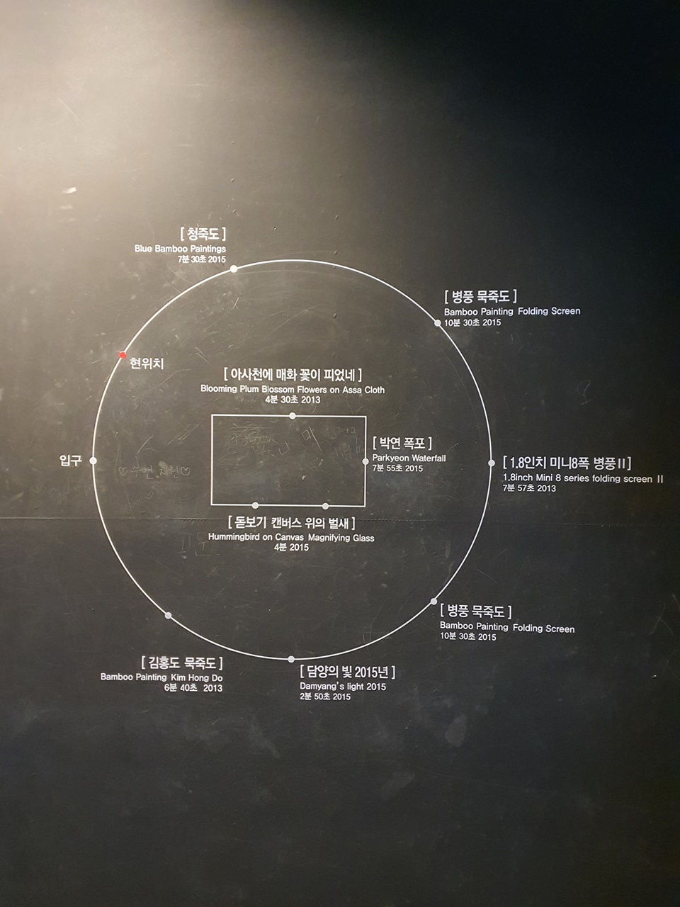 담양의 대나무를 아름다운 영상으로 표현한 작품과 고전의 명화를 재해석한 미디어아트가 전시되어 있었습니다.