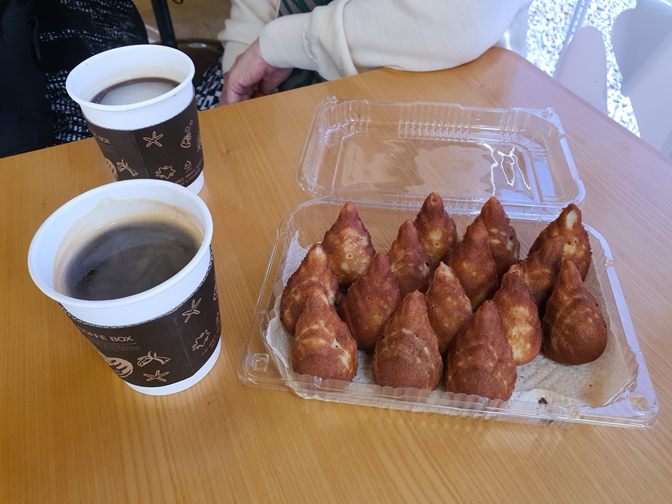 커피 한 모금에 죽순빵 하나^^ 꽤 괜찮은 조합이었습니다.