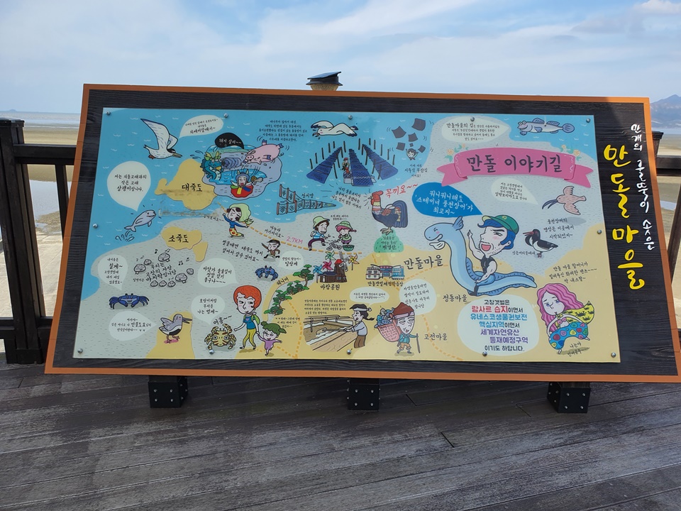 고창의 특산물과 유명 생물들을 소개한 '만돌 이야기길' 표지판을 보니,