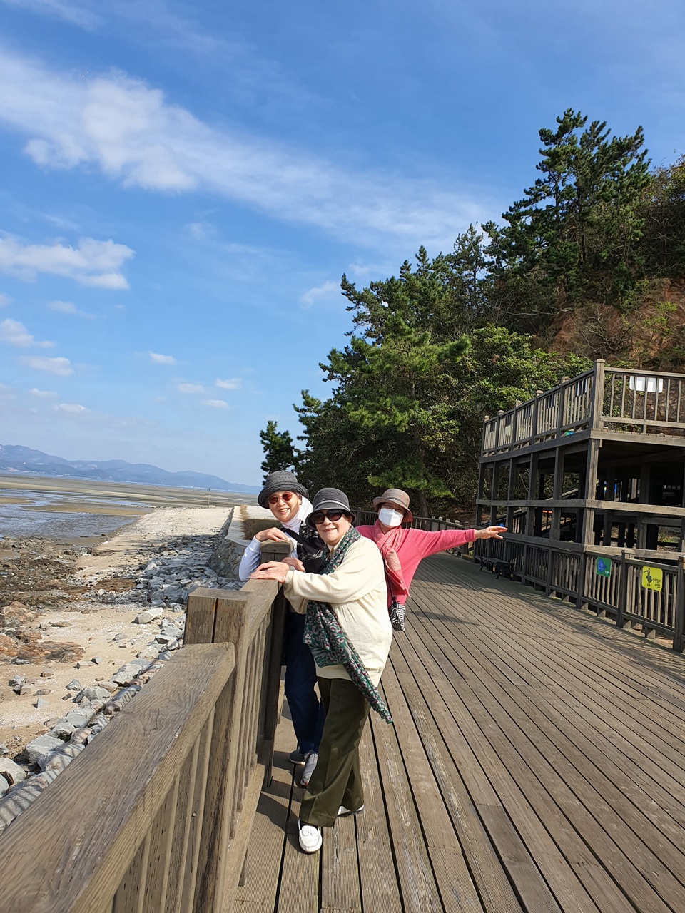 앉아서 갯벌을 바라보며, 하늘을 바라보며, 잠시 휴식을 취하시는 마이 시니어들^^