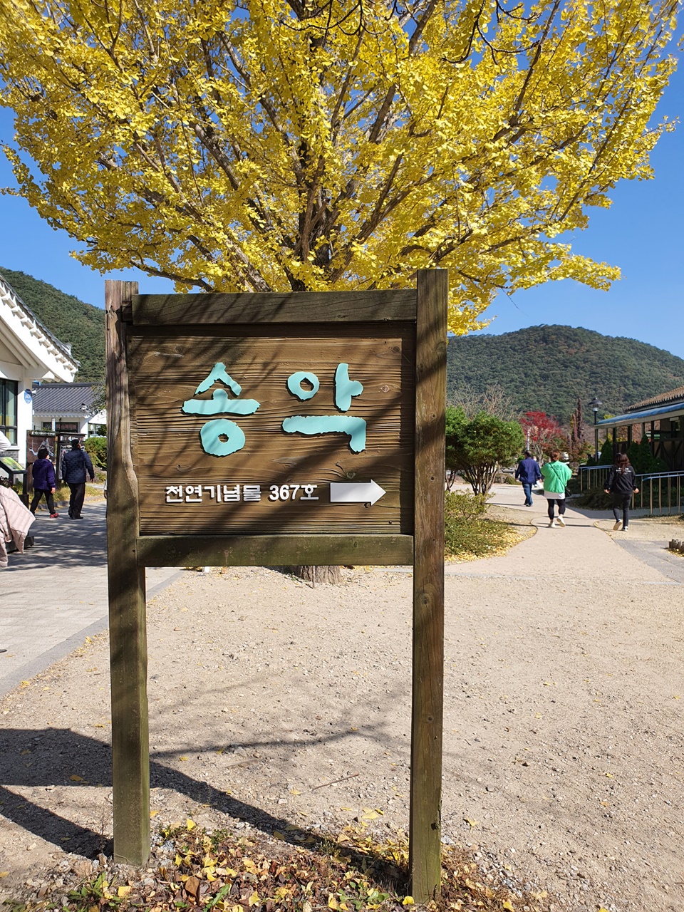 산책길에서 볼 수 있는 은행나무와 단풍나무들 그리고 동백나무들