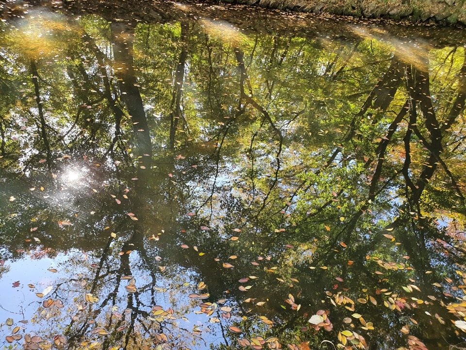 생태연못과 데크가 멋있는 풍경을 주는 '선운산 생태숲'과 '선운천' 맑은 물에 비친 나무들이 주는 풍경