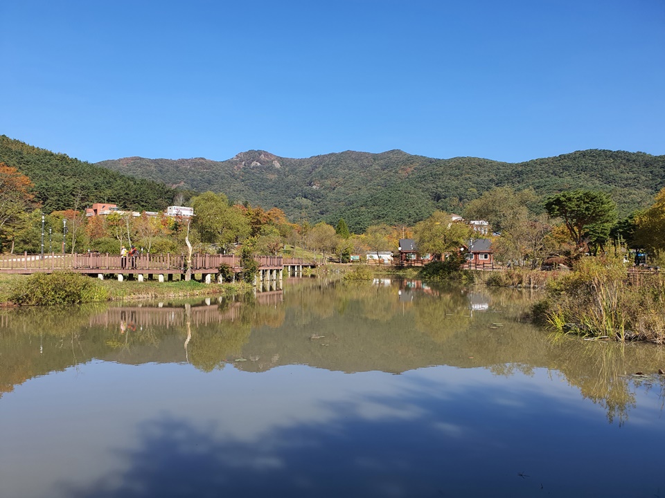 생태연못과 데크가 멋있는 풍경을 주는 '선운산 생태숲'과 '선운천' 맑은 물에 비친 나무들이 주는 풍경