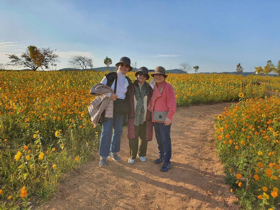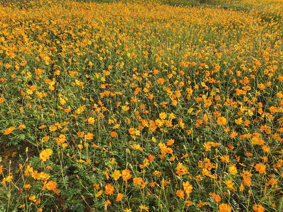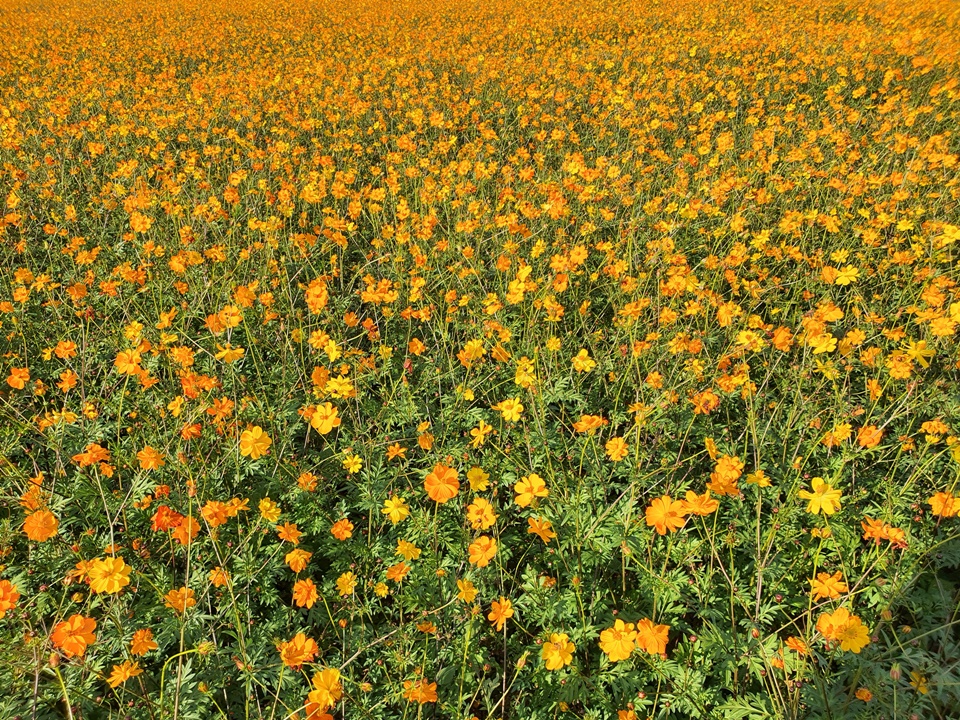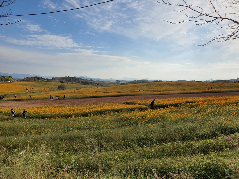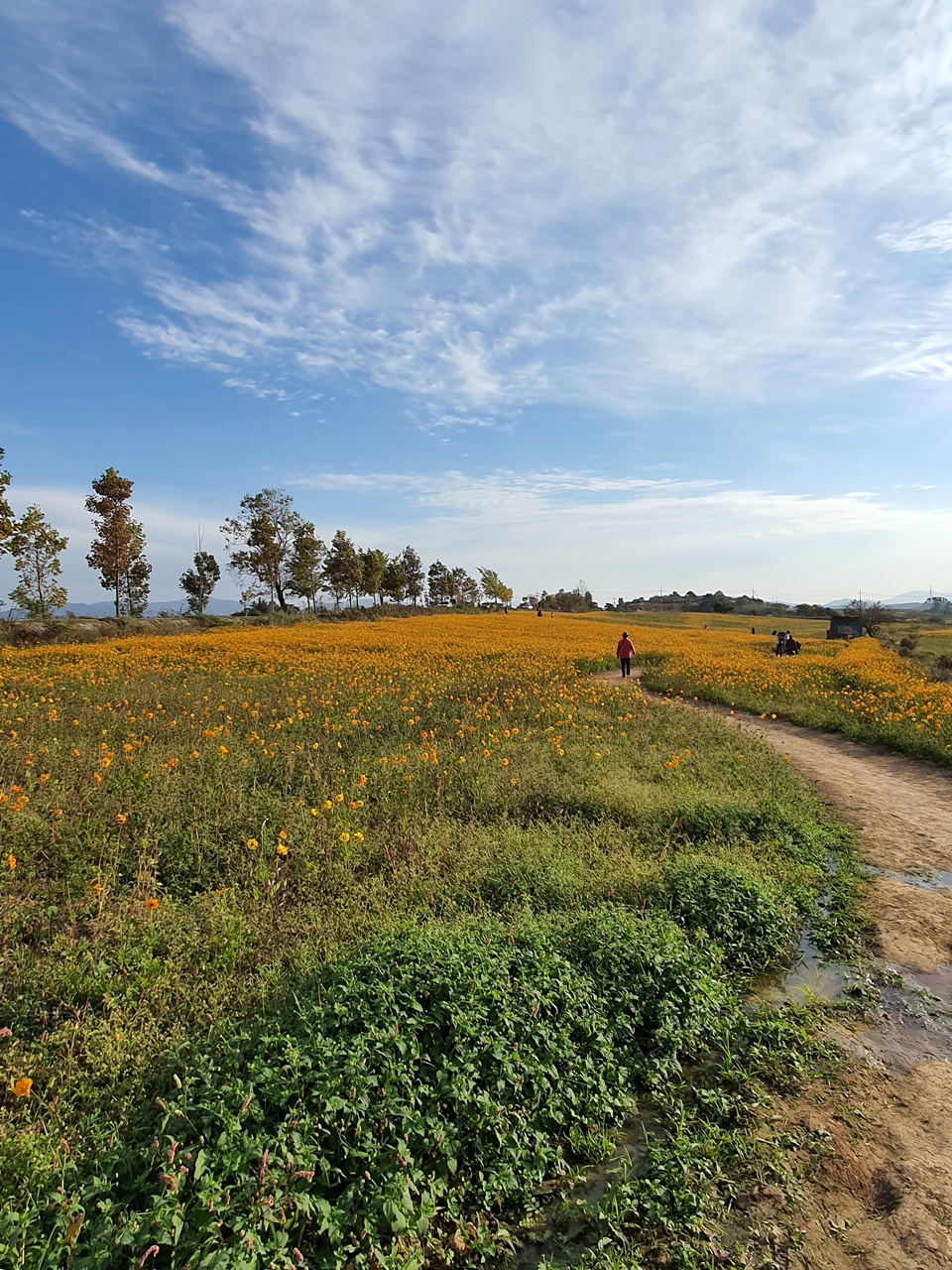 부여에서 본 코스모스와는 다른 느낌인 주황색 코스모스는 이국적인 느낌이 들었습니다. 이 꽃들은 황화 코스모스(금계국)라고 하는데, 멕시코에서 왔다고 합니다.