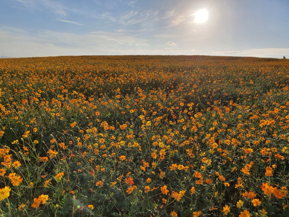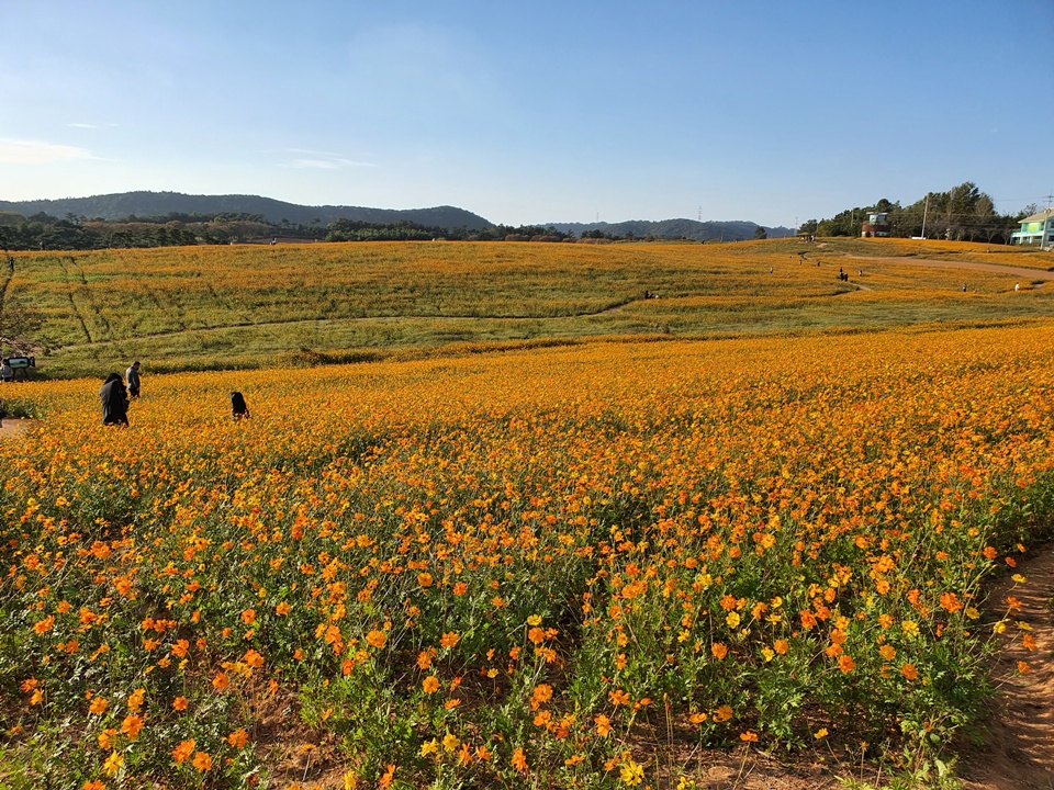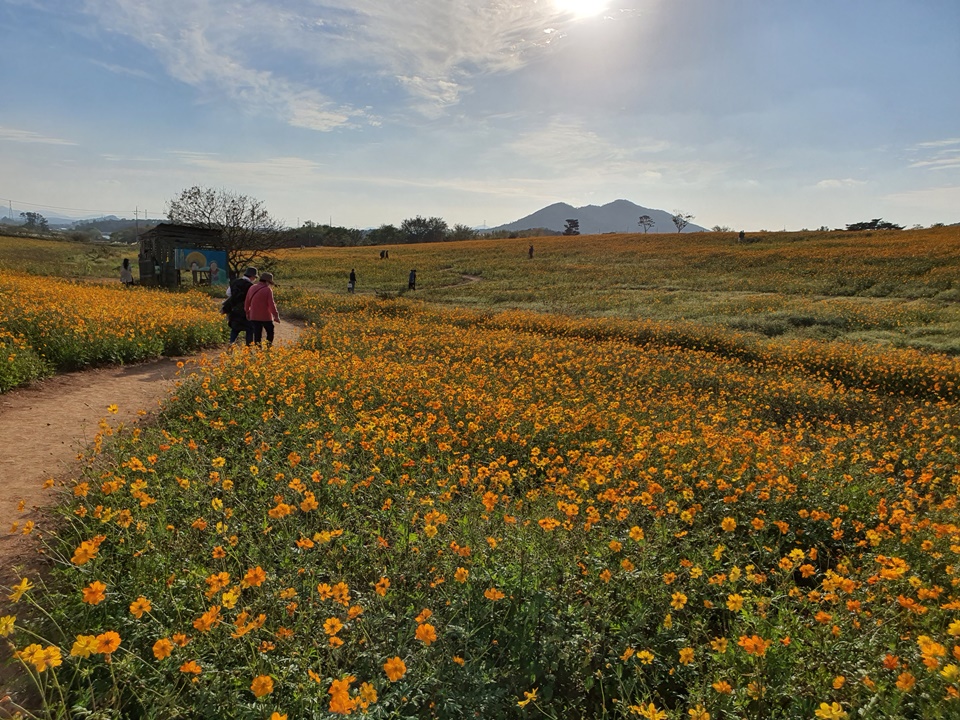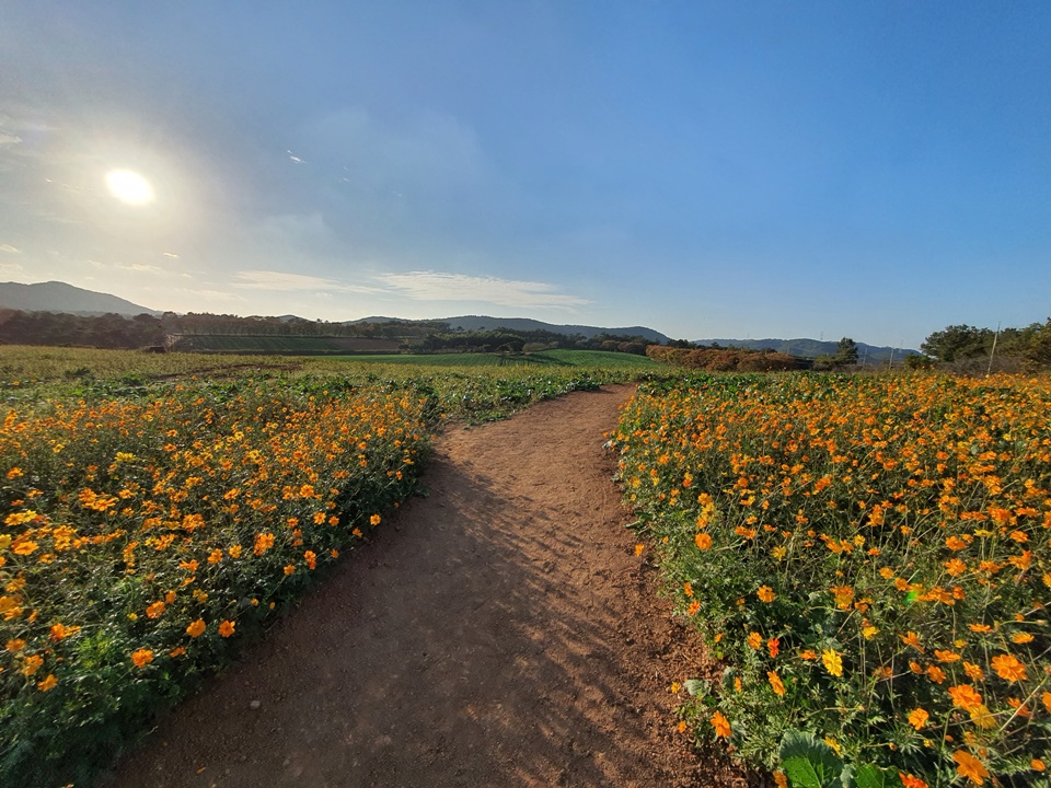 청보리와 메밀꽃으로 유명한 곳이라고 해서 갔는데, 제 눈앞에 펼쳐진 모습은 너무 아름다워서 입을 다물게 되는 주황색 꽃들의 향연이었습니다.