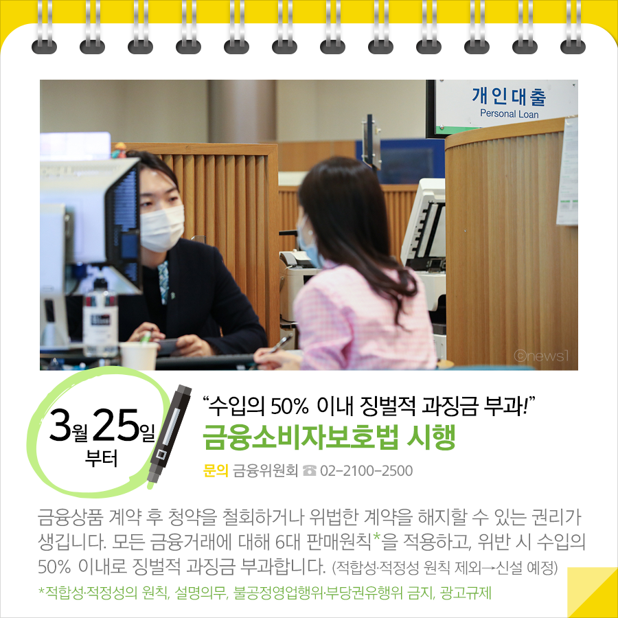 ◆ “수입의 50% 이내 징벌적 과징금 부과!”… 금융소비자보호법 시행 (3월 25일부터)