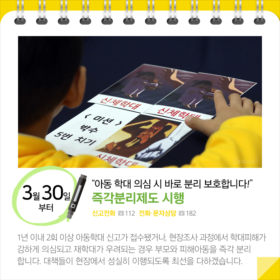◆ “아동 학대 의심 시 바로 분리 보호합니다!”… 즉각분리제도 시행 (3월 30일부터)