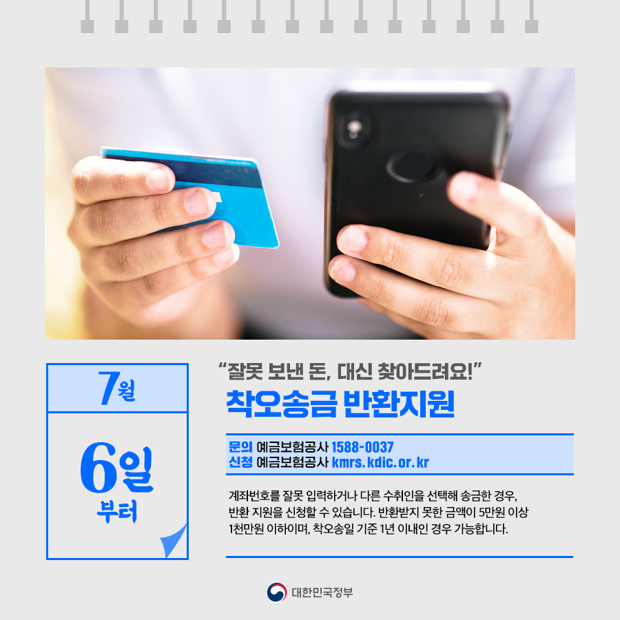 ◆ “잘못 보낸 돈, 대신 찾아드려요!”… 착오송금 반환 지원 (7월 6일부터)