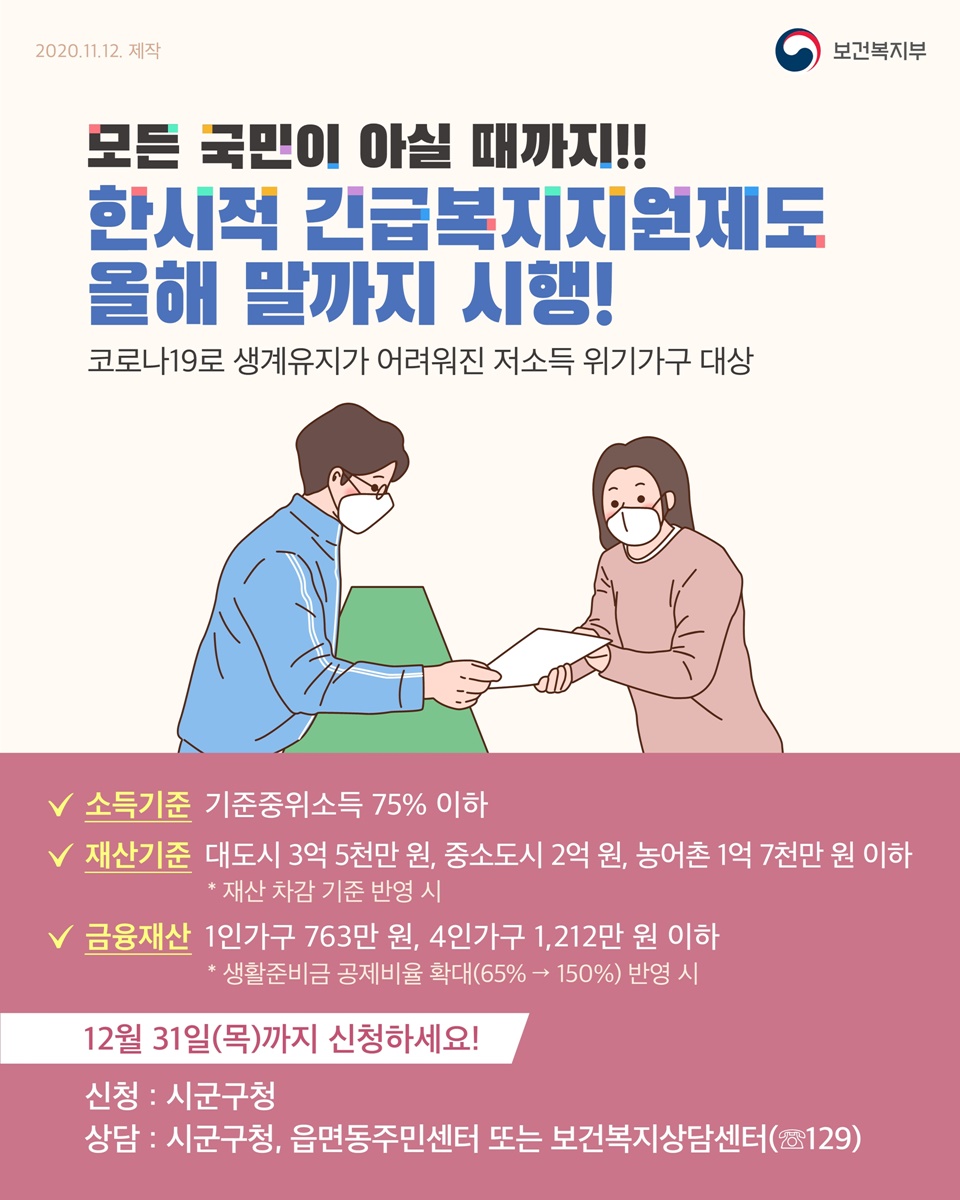 #3 한시적 긴급복지지원제도, 올해 말까지 시행!