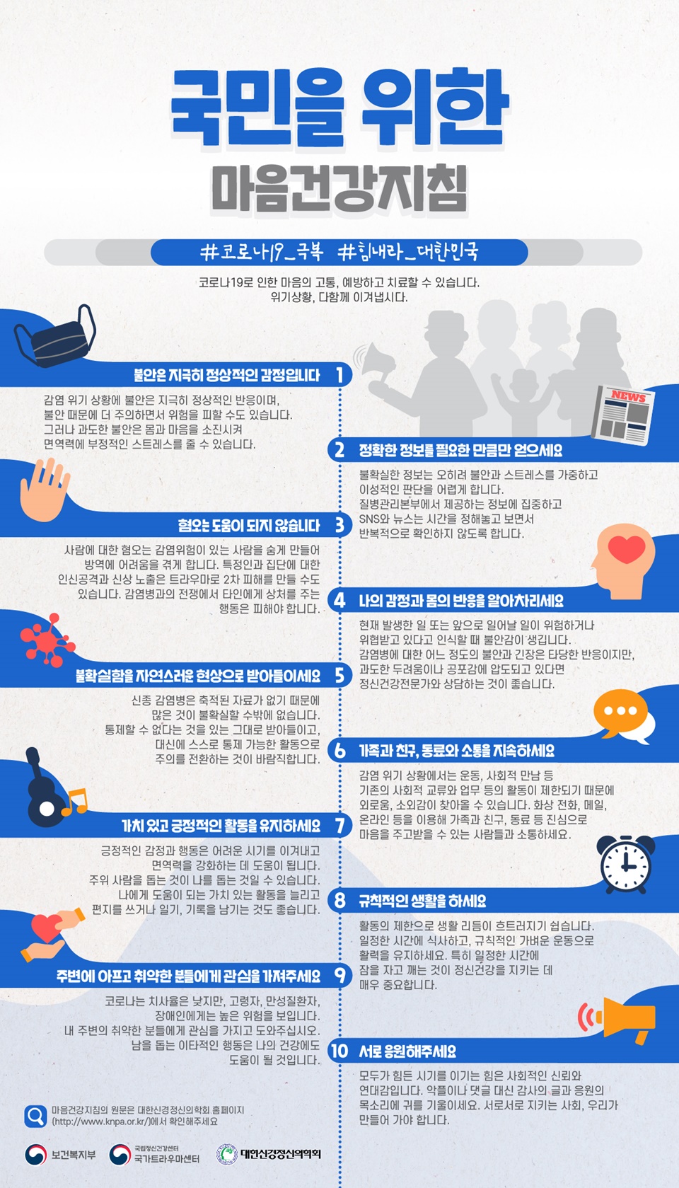 '코로나19 극복을 위한 마음건강지침', 너무나 좋은 자료들이 있어 펌 합니다.