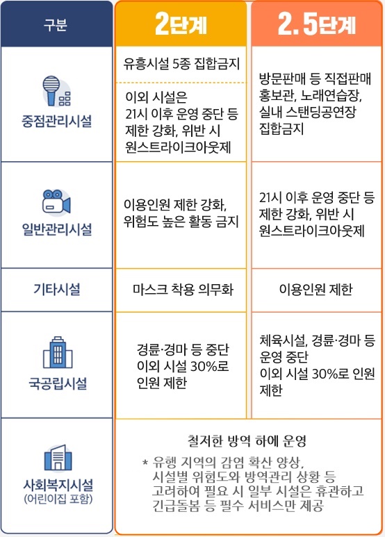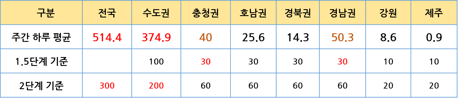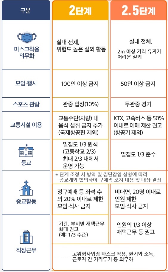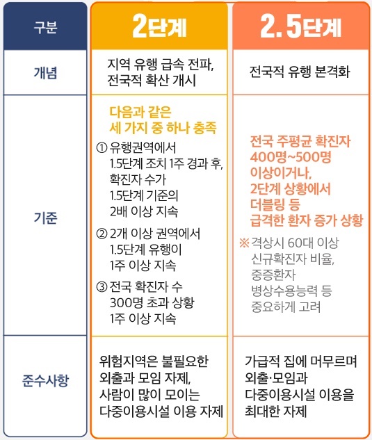 수도권은 2.5단계로 상향하고, 비수도권은 2단계 상향을 결정하였습니다.