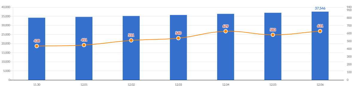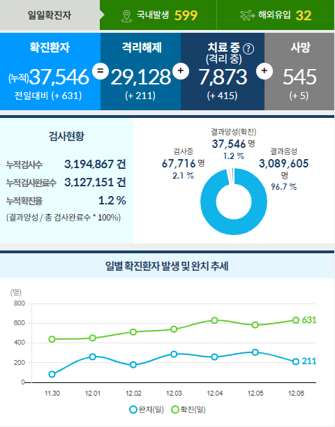 일일 확진자수가 12월 5일은 583명, 12월 6일은 631명이라고 하네요.