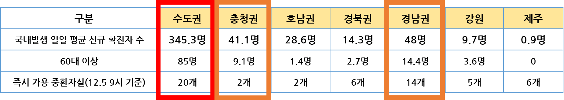 [ 권역별 주간 일평균 국내 확진자 현황(11.30~12.6) ]