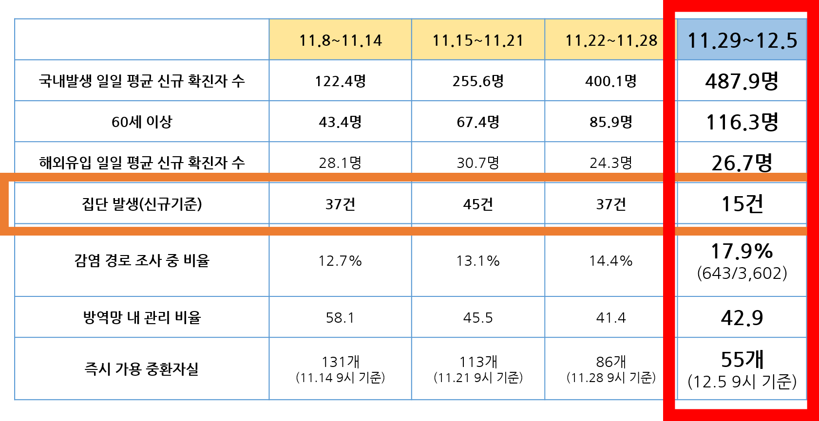 [ 최근 방역 관리 상황 비교(11.29~12.5) ]