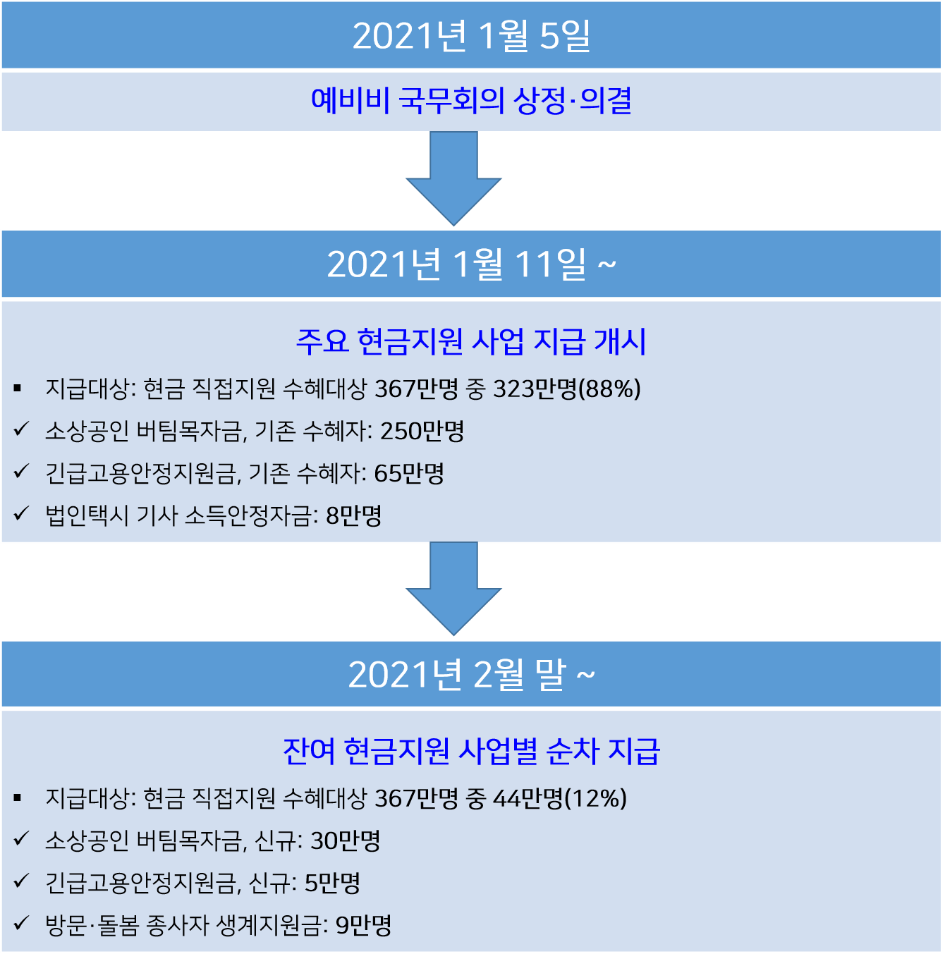 - 코로나19 3차 확산에 따른 방역강화 등으로 피해가 집중되어 영업과 생계에 어려움을 겪게 된 소상공인과 코로나 상황 장기화로 소득이 감소한 고용취약계층에게 직접적이고 즉각적인 피해지원방안을 대책했습니다.