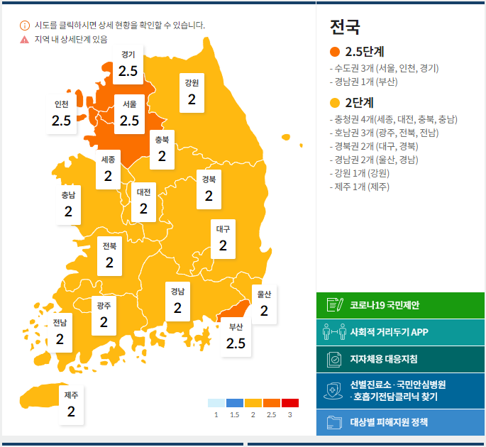 [ 지역별 거리 두기 단계 (2020.1.6 00시 기준) ]