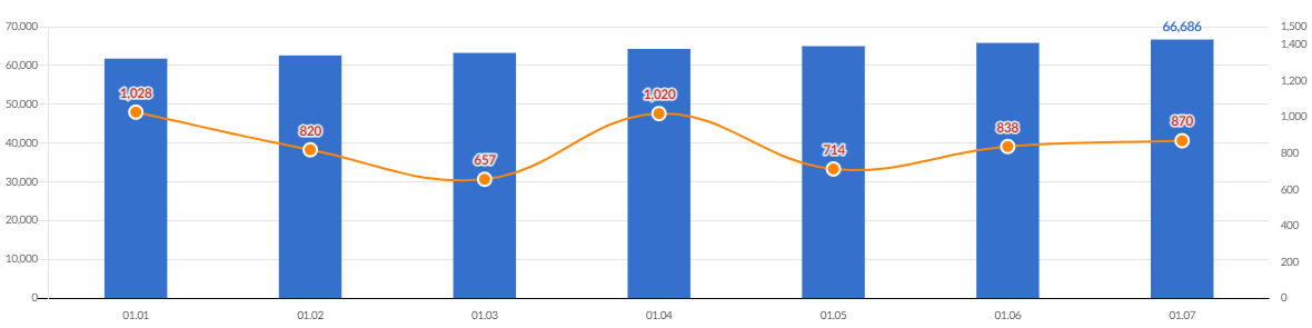 일일 확진자는 870명(01.07 00시 기준), 누적 확진자는 66,686명이라고 합니다.