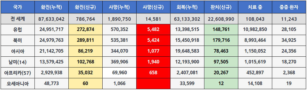 지금 1월 7일 세계 코로나19 현황은 어떤지 궁금해서 찾아봤습니다.