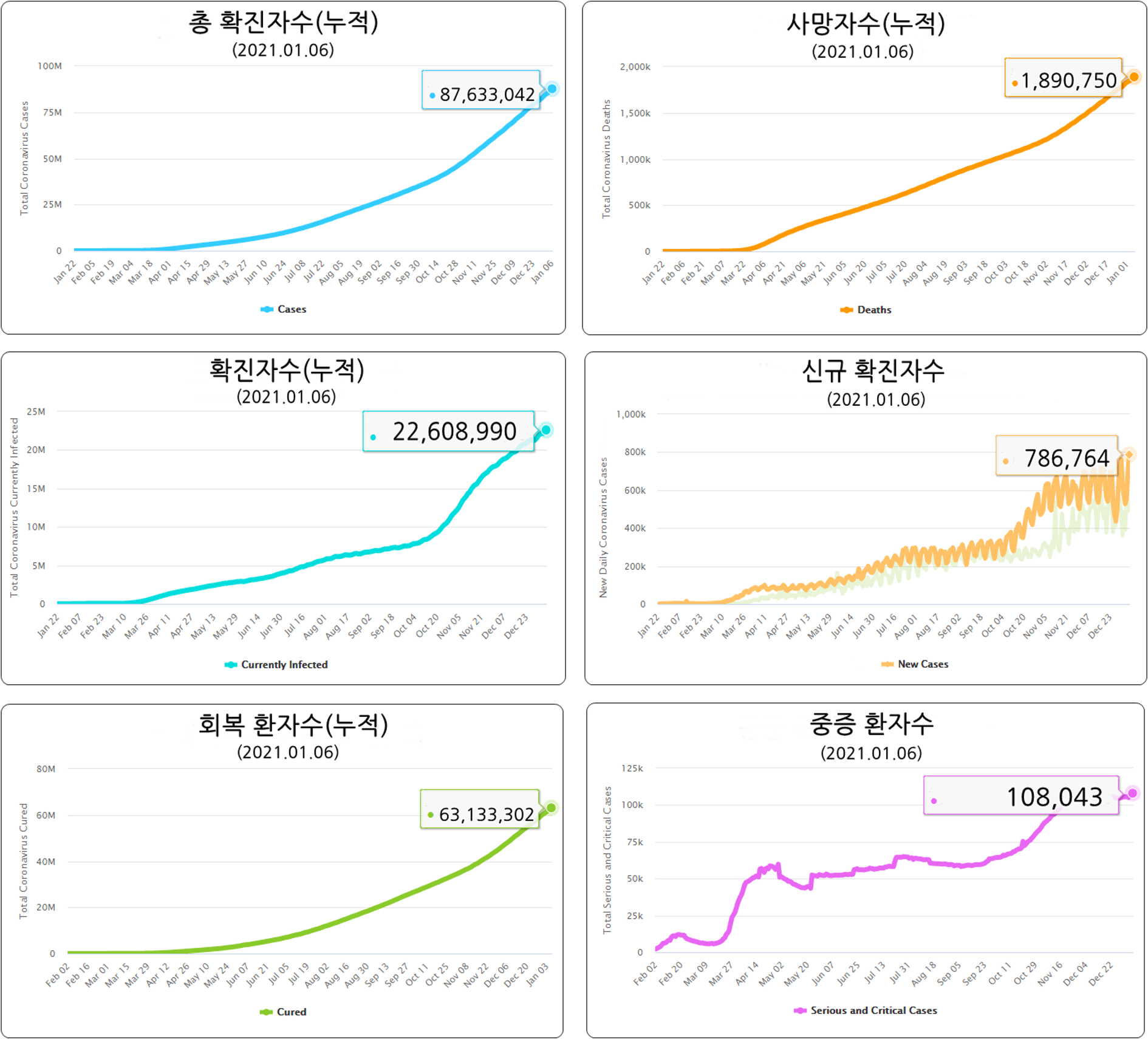 국가별 시차가 있어, 2021년 1월 7일 자료는 전체 국가 수치를 포함하지 않아서