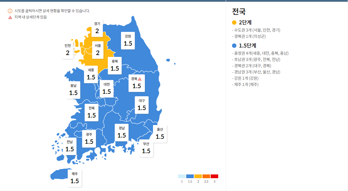 [ 지역별 거리 두기 단계 (3.1 00시 기준) ]