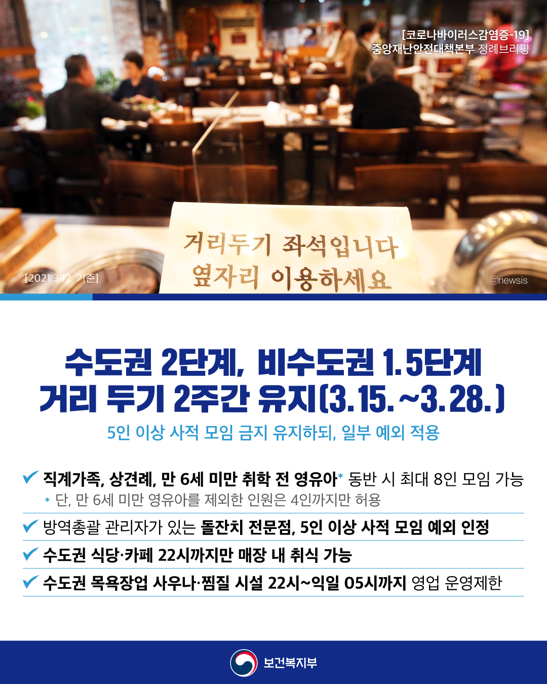 이상 3월 15일(월)부터 시행되는(유지된) 사회적 거리두기에 대한 내용을 정리해보았습니다.