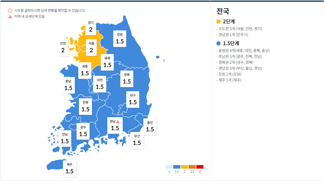 즉 '사회적 거리두기 수도권 2단계, 비수도권 1.5단계'가