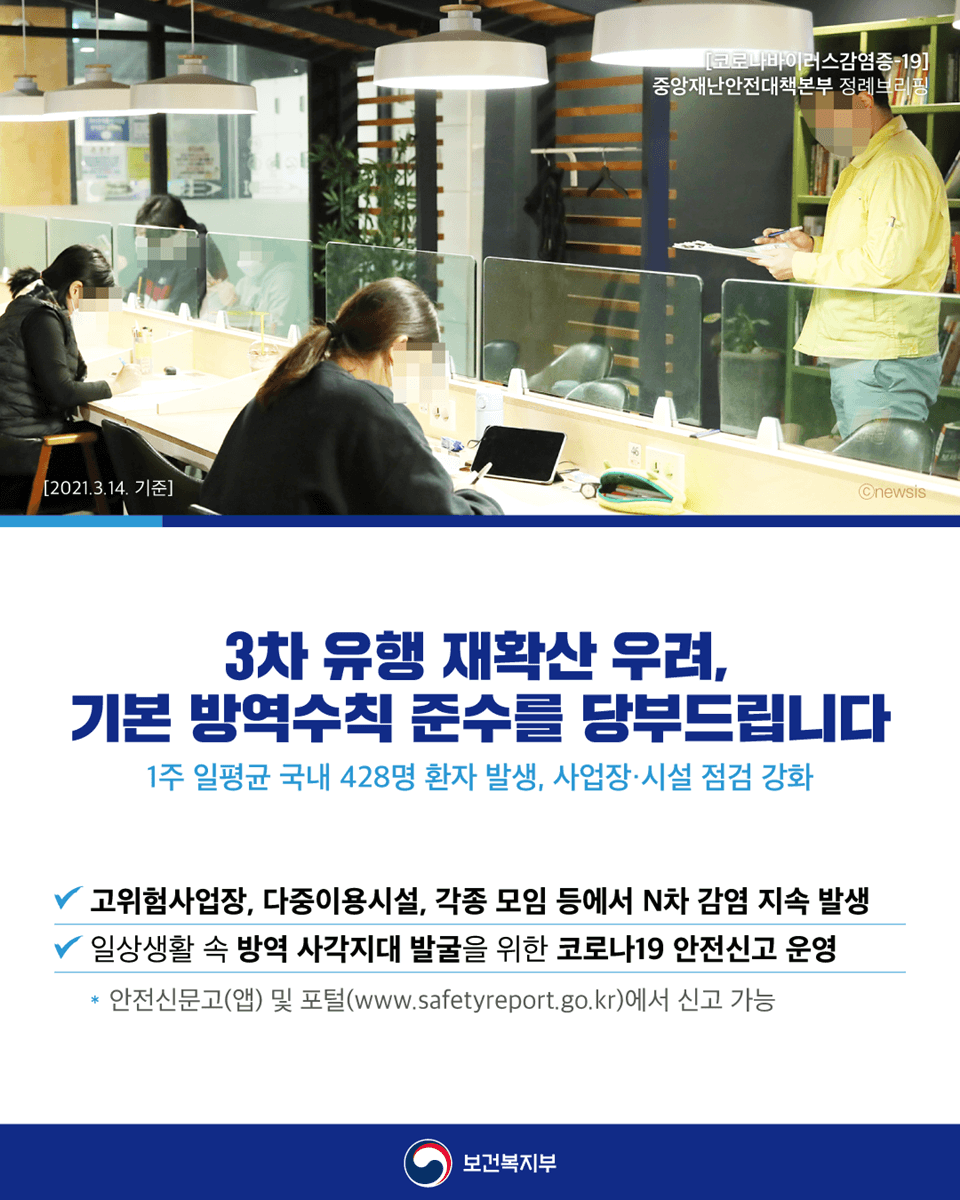 코로나19 3차 유행 재확산을 무조건 막아야할 것 같습니다.