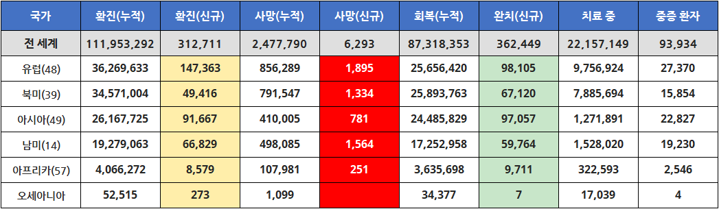 전 세계적으로는 봤을 때, 신규 확진자수와 중증환자수가 조금씩 줄고 있긴 하지만