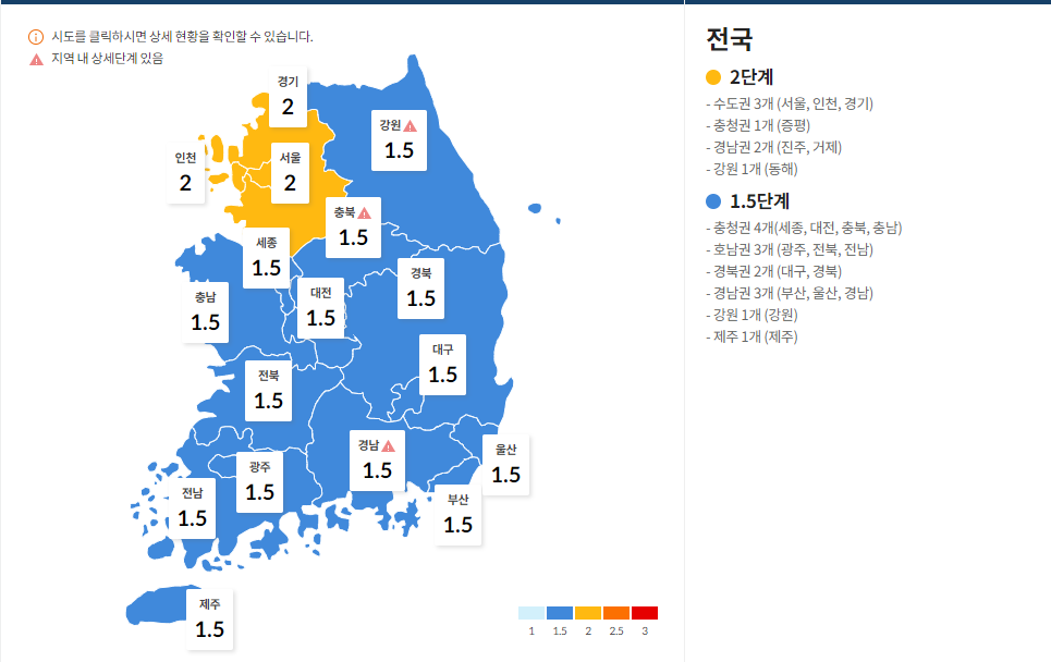 [ 지역별 거리 두기 단계 (2021.3.29 00시 기준) ]