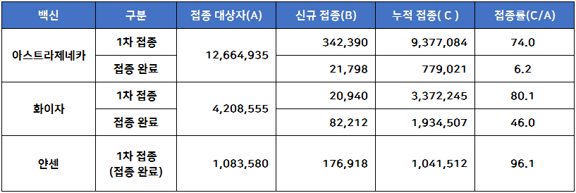 백신 1차 접종자 수540,248명이며, 누적된 총 1차 접종자 수는 13,790,841명입니다.