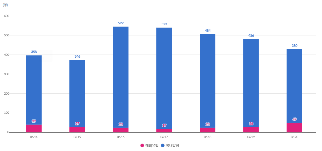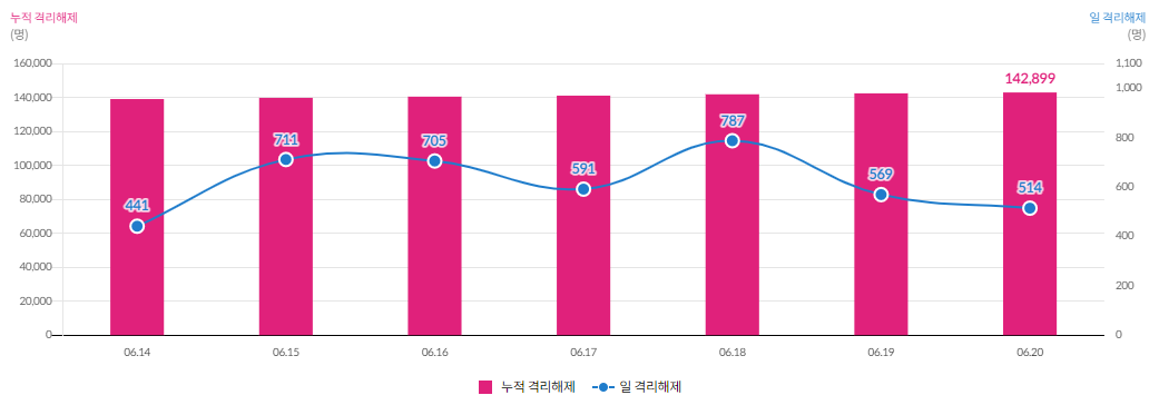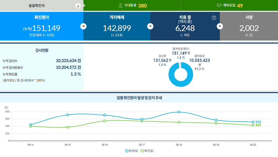 6월 20일, 중앙방역대책본부가 발표한 자료에 따르면