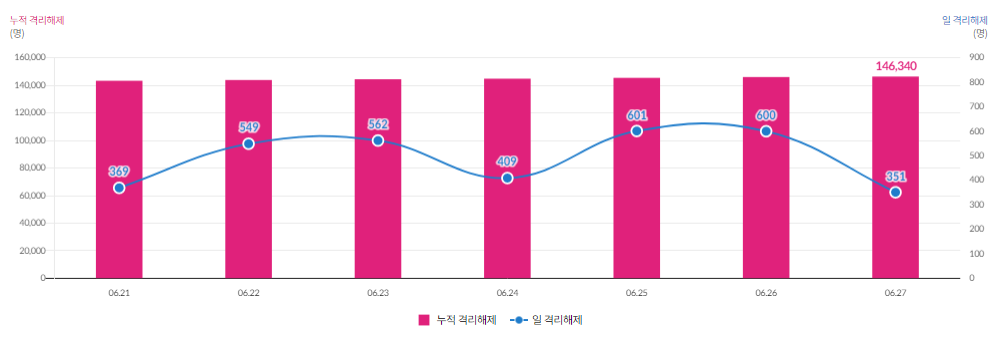 6월 27일, 중앙방역대책본부가 발표한 자료에 따르면