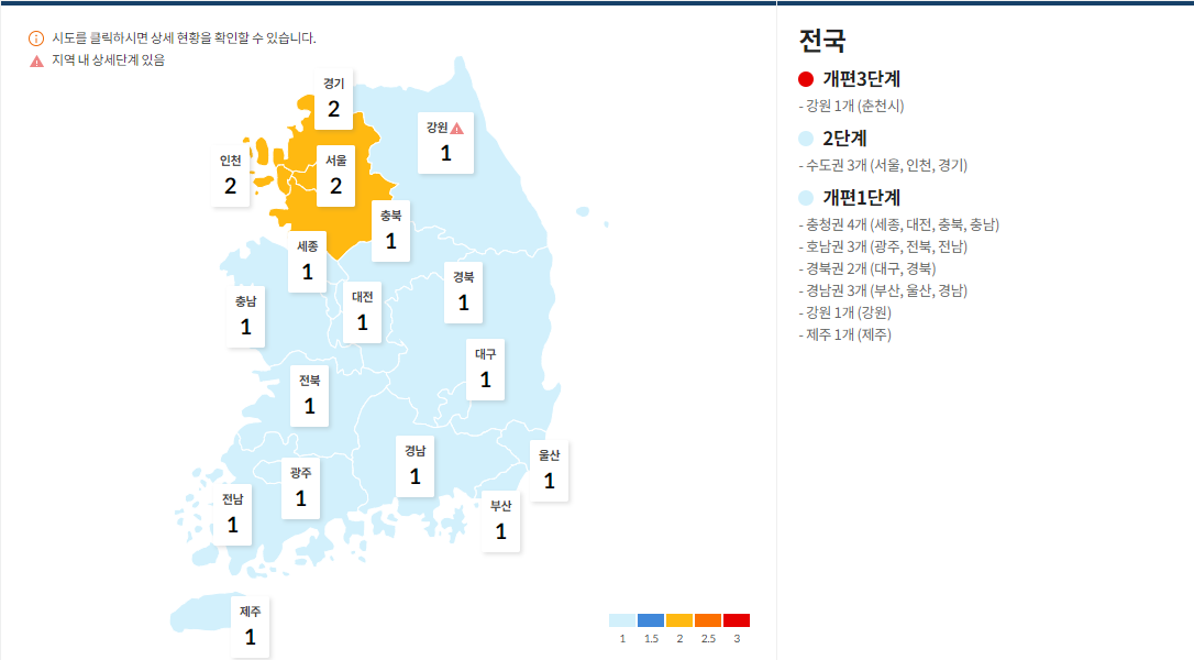 그리고 개편 3단계는 강원 1개(춘천)입니다.