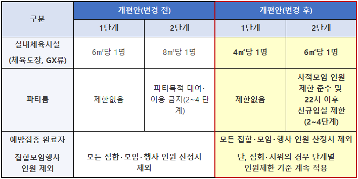 - 방역지침을 1차로 위반하는 경우 현행 경고 처분에서, 개정안에 따라 운영 중단 10일의 처분이 가능해짐