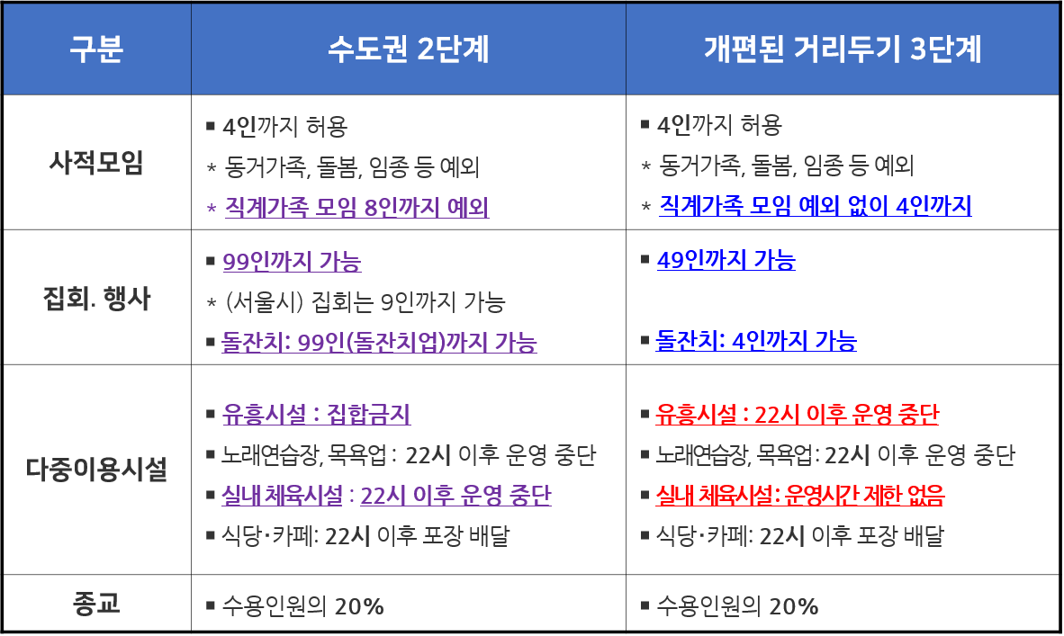[코로나19#51] 새로운 거리두기 개편(수도권 2단계, 비수도권 1단계 적용)