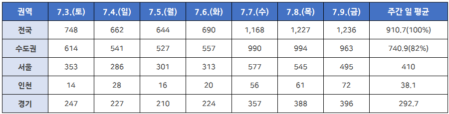 7월 9일, 중앙 방역대책본부가 발표한 자료에 따르면