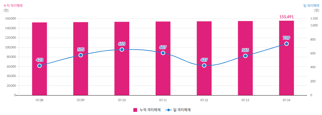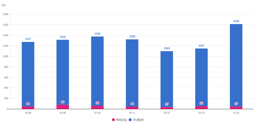 7월 14일, 중앙 방역대책본부가 발표한 자료에 따르면